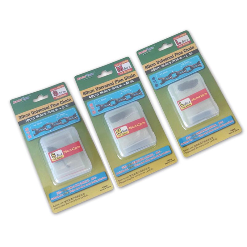 These chains made by MasterTools (Trumpeter) are available in three widths and come pre-painted with black paint to improve paint adhesion.