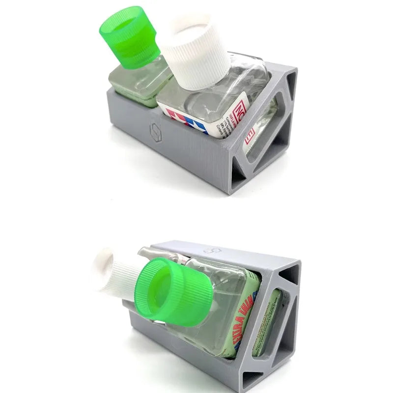 These glue holders, valid for Tamiya or AK bottles, prevent overturning while you conveniently and safely apply glue to your model.