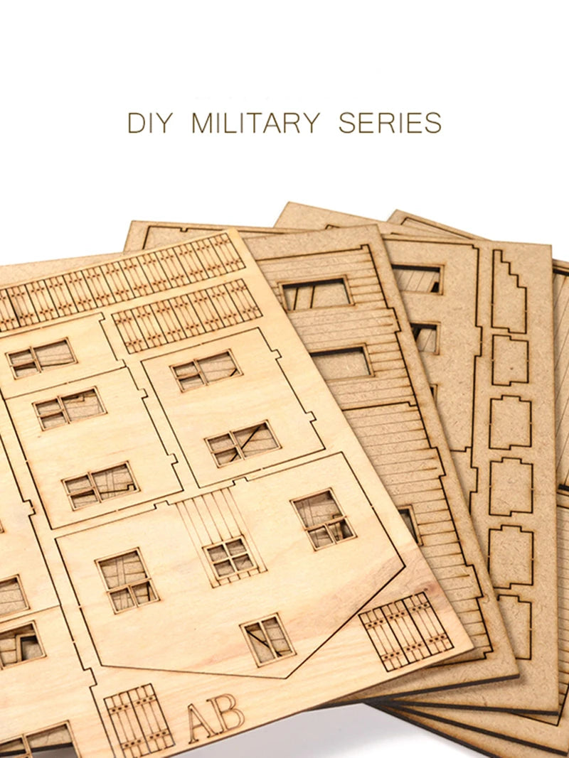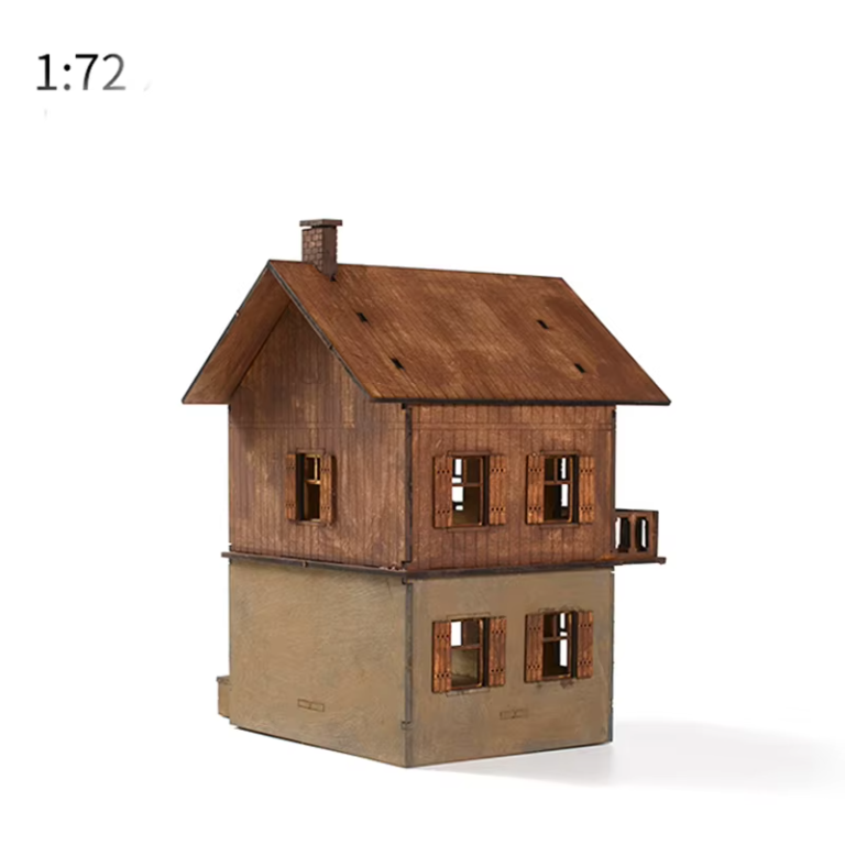 Excellent wooden model kit of a two-story house, ideal for military dioramas.