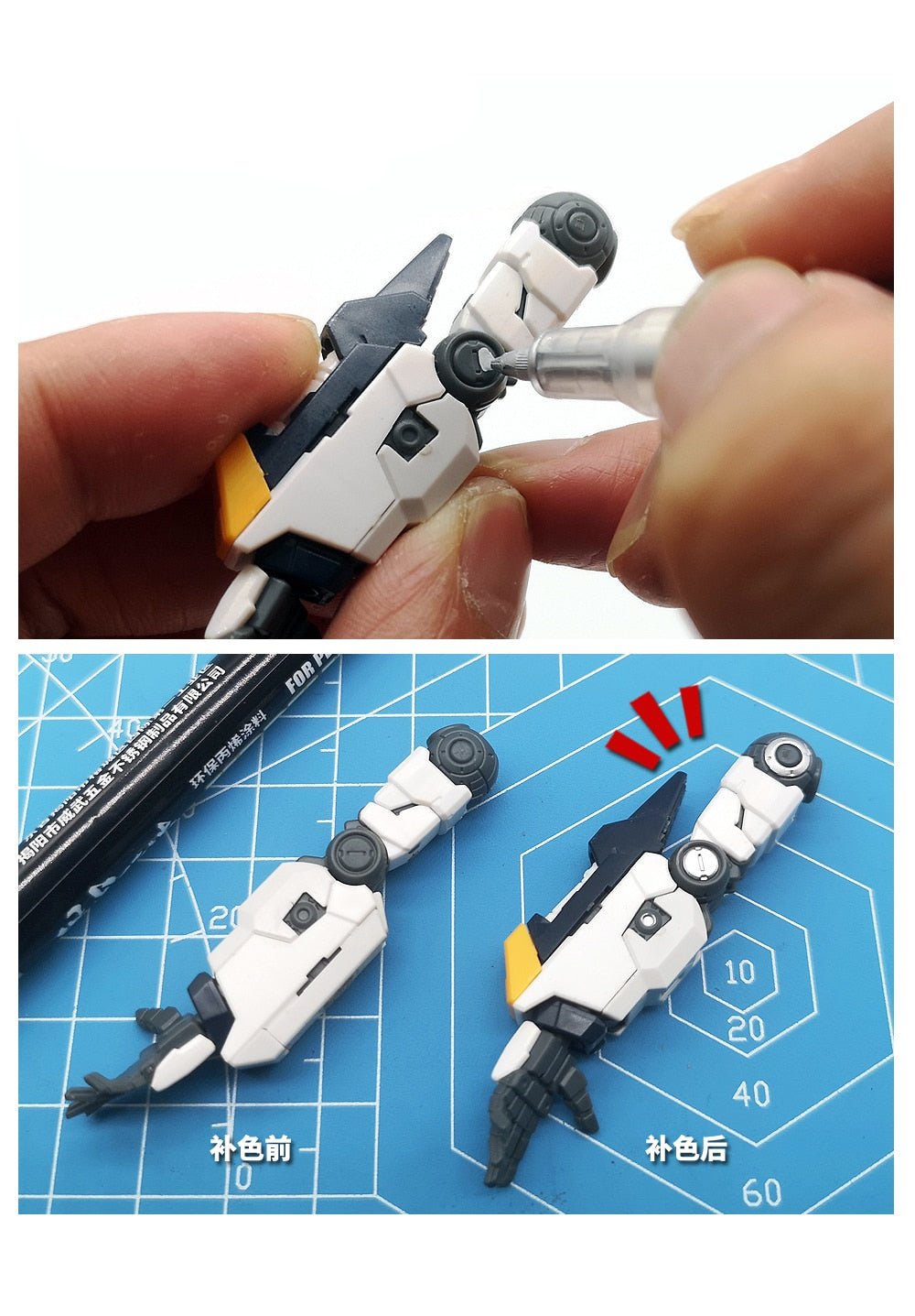 In that case, a soft-tipped pen is an ideal solution. Very fast and convenient: remove the lid, apply the paint, and you're done.
