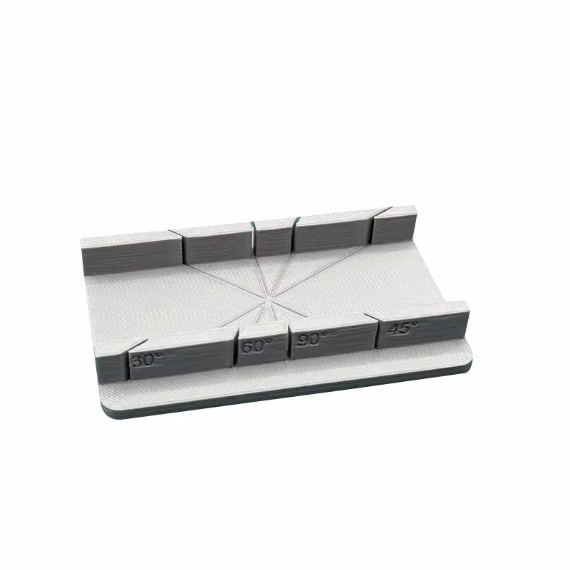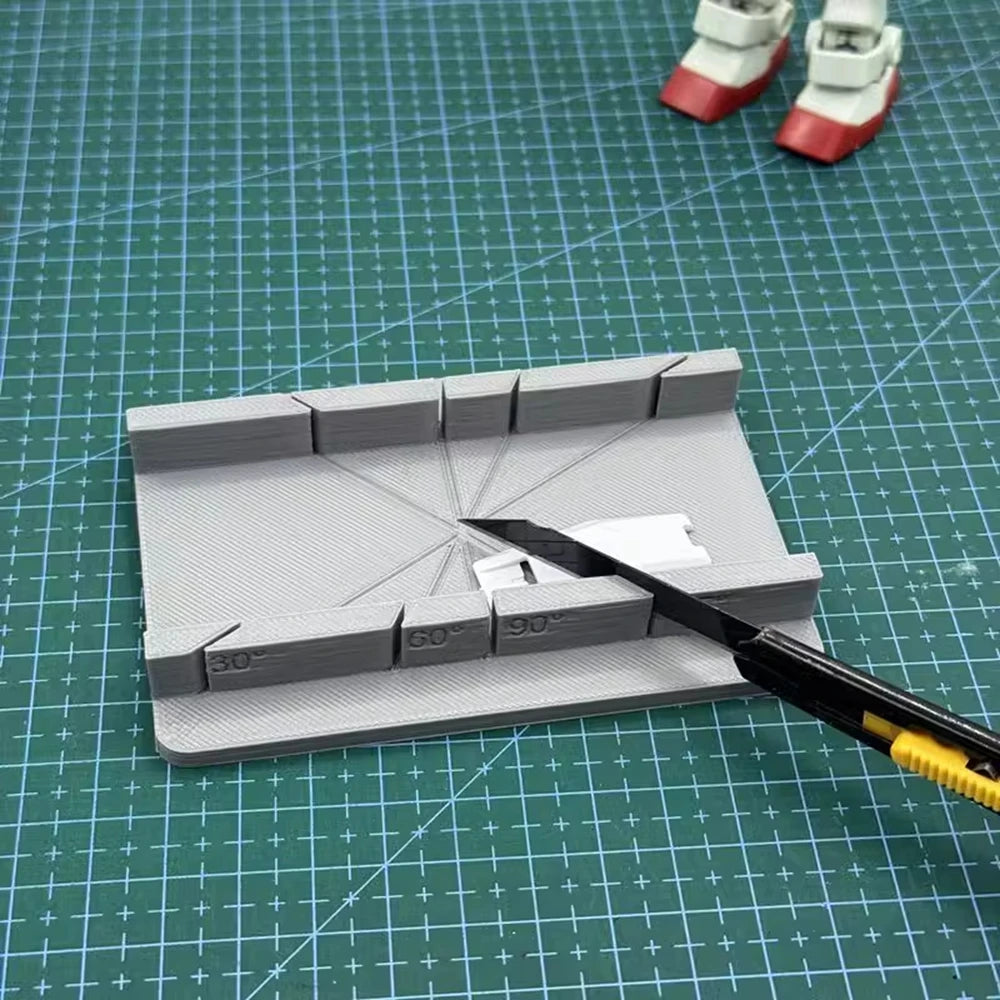 This tool, made of lightweight metal, features grooves cut at several angles (30°, 45°, 60°, and 90°) where we can position our blades. This ensures precise diagonal cuts without inaccuracies.