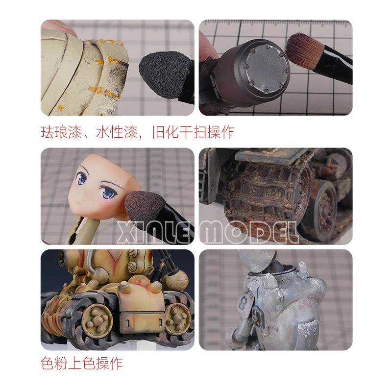 Weathering, particularly through streaking and pigment application, requires very soft brushes to effectively control the effect without completely removing it.