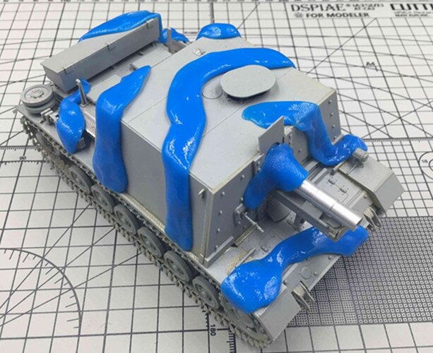 • Use Photo-etched stencils. Again, it's good, and if you know how to use them you can do soft-edge camouflages. Unfortunately, these stencils are only useful for relatively big, flat surfaces. It's impossible to use them effectively to apply a camo on most tank turrets, crevices etc, let alone the main gun.