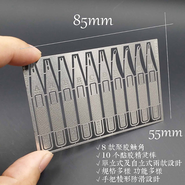 What you need if you are in this situation is a good set of CA applicators. Made of PE-like metal, they include a slit at the front so you can load them with glue and start applying on your model, letting you be super precise. They also come in different shapes so you can adapt to any contours.