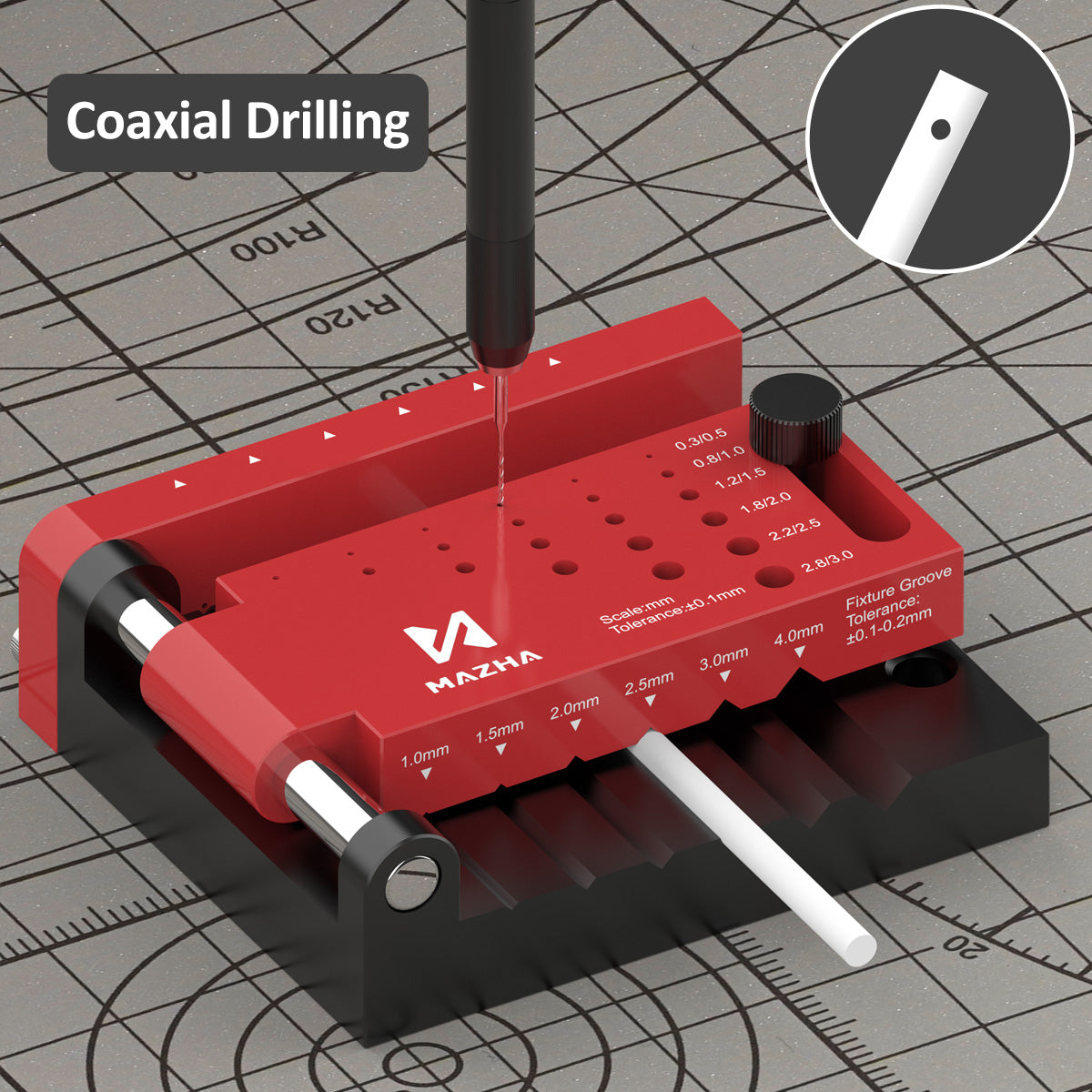 - Drilling a hole in the center of a rod, or a kit part such as a machine gun nozzle, a hydraulic conduit, etc.