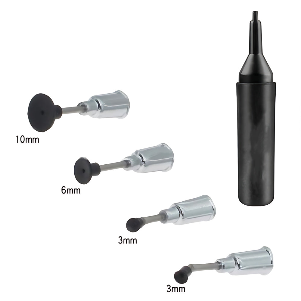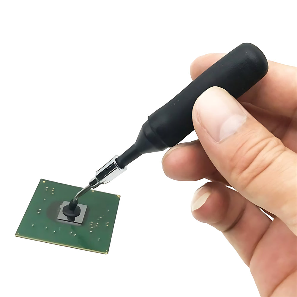 These are simple mechanical objects that work in the same way as a dropper: you press on a flexible rubber part, then place one of the cups on top of the part, and then release the rubber, thus creating a vacuum that holds the part in place.