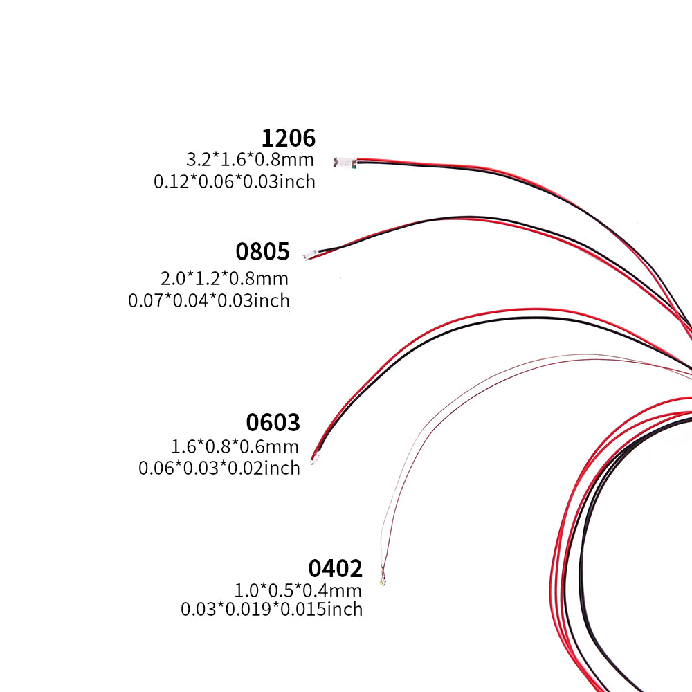 - 1206 3.2x1.6x0.8mm/0.12x0.06x0.03inch, 0.34mm red and black wire