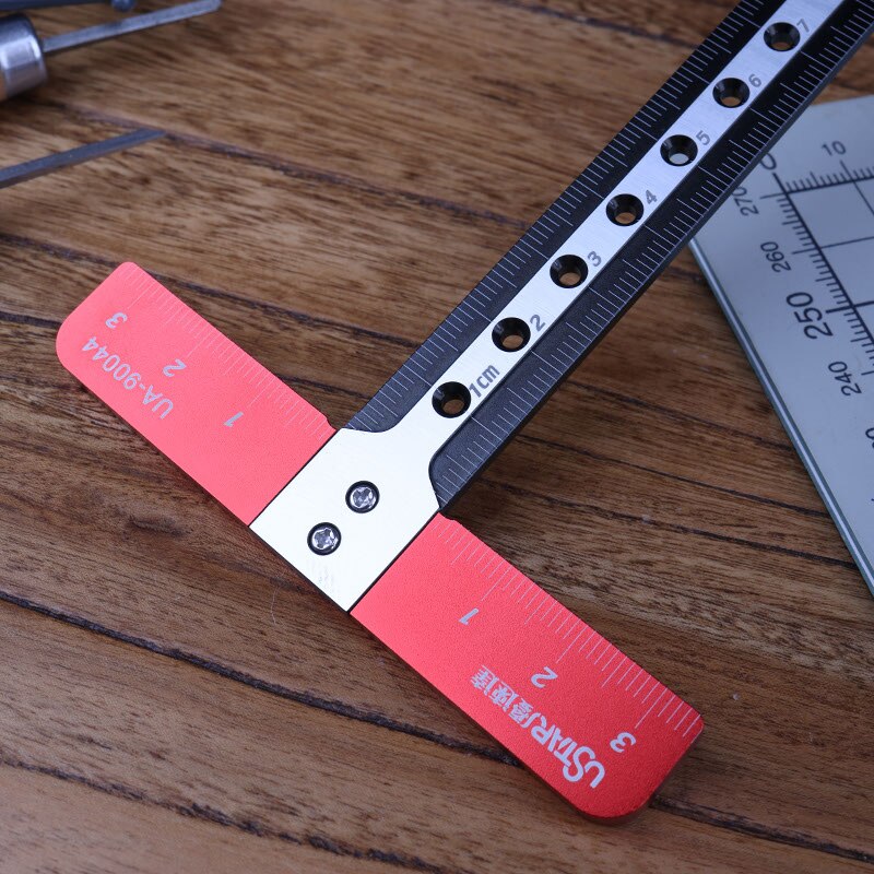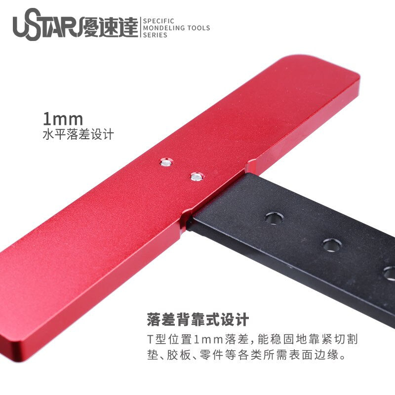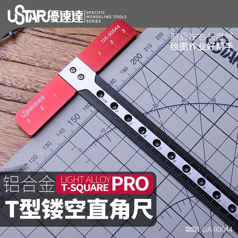 A T-shaped ruler that will allow you to create perfectly perpendicular and parallel lines in pieces of wood, styrene, brass, and more.
