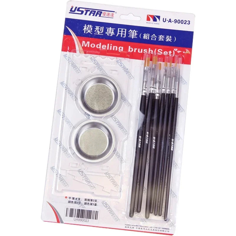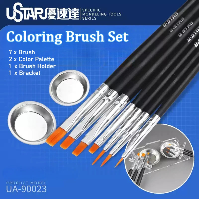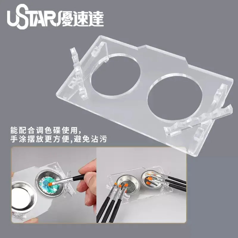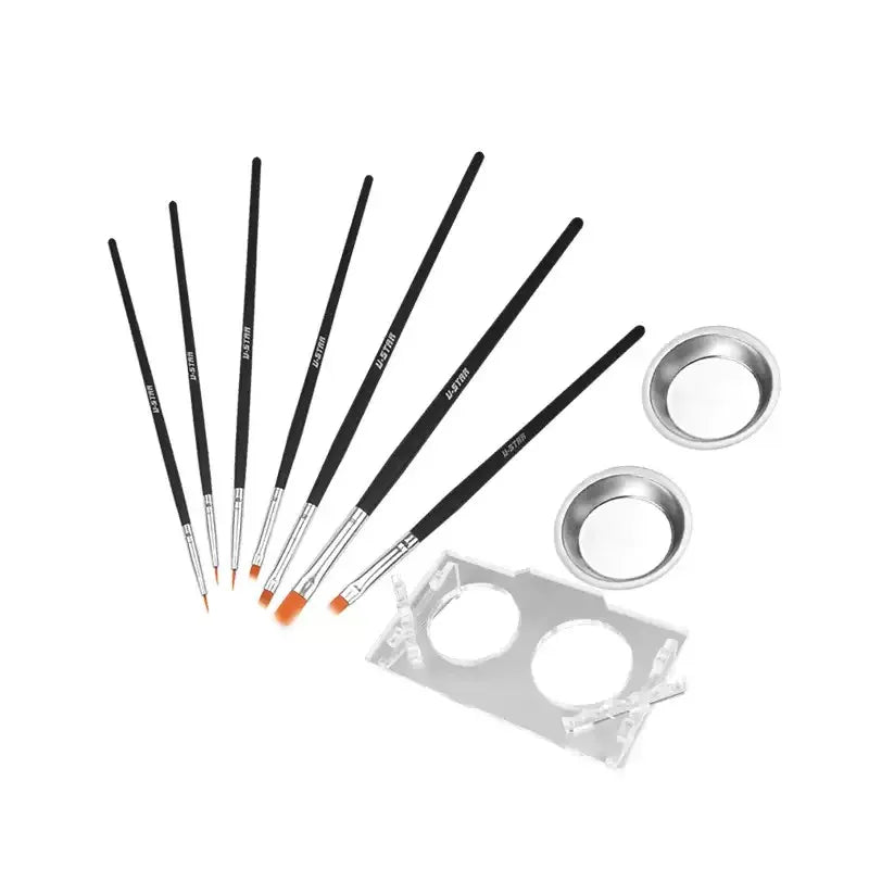The set also includes a brush holder with brackets to keep the brushes secure and two mixing cups so you can mix different paints to your liking.