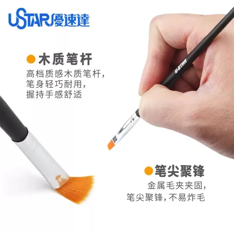 This set of seven different synthetic brushes includes flat and round brushes of different sizes.